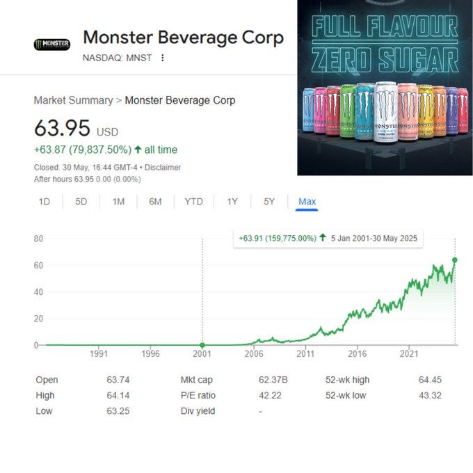 Everyone knows Monster by now but you may be surprised to learn that Monster has returned 159,775% since 2000.
